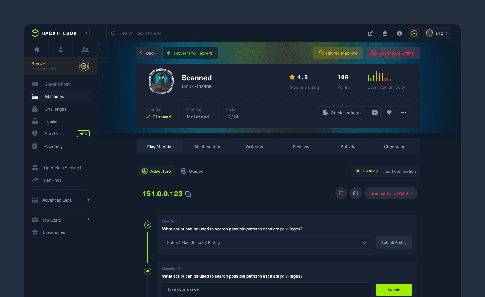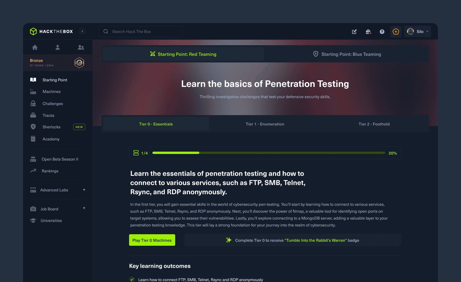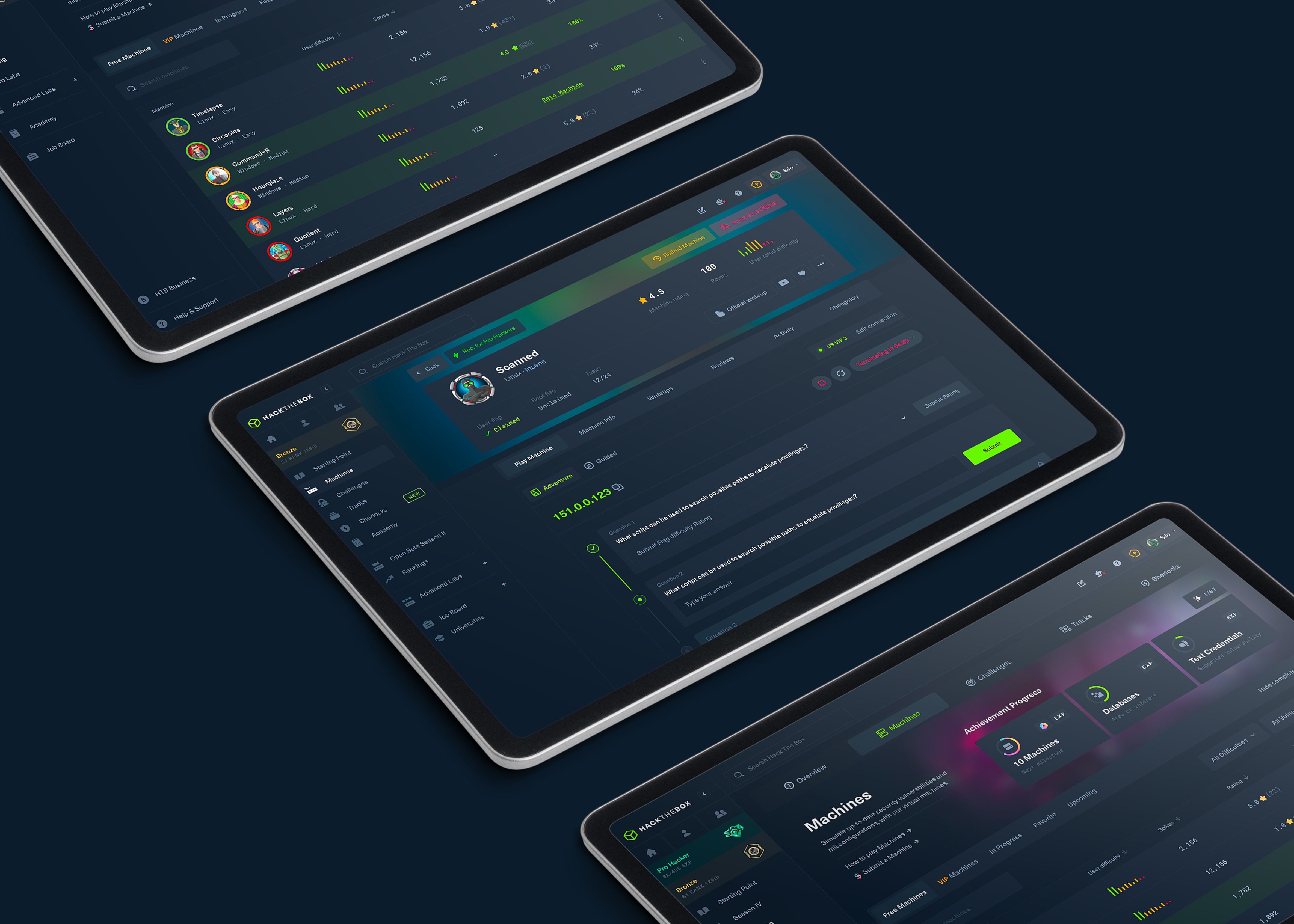 As the founding designer, HTB Labs was the inaugural product I undertook. Comprehensive enhancements were implemented across all facets of the product, encompassing user connectivity to our services, visualizing IP addresses as entry points, and educating beginners on the concept of establishing a foothold within a system. Subsequently, it became necessary to rebrand, and I was tasked with developing the strategic direction for the entire product suite, including its information architecture, branding, and serving as a liaison between developers and project managers.